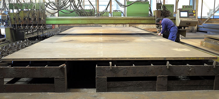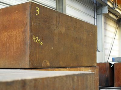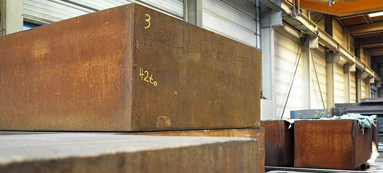 In der Fertigung wachsen wir über das Normalmaß hinaus. Stückgewichte bis 50 Tonnen und autogen gebrannte Zuschnitte bis 8oo mm Dicke mit maximaler Breite und Länge sind für uns Routine. Das Brennen in verschiedenen Ebenen ist eine Spezialität!